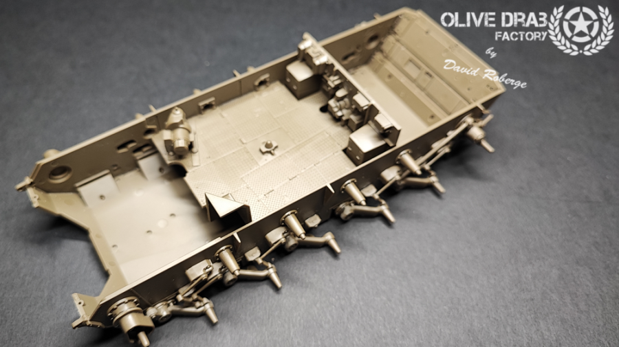 Die ersten 14 Bauschritte lt. Anleitung befassen sich mit der Unterwanne und dem Laufwerk. Typisch für den Japanischen Hersteller passt alles haargenau aufeinander und zueinander. Probleme gibt es keine und man kann schnell erkennen was es mal werden soll.